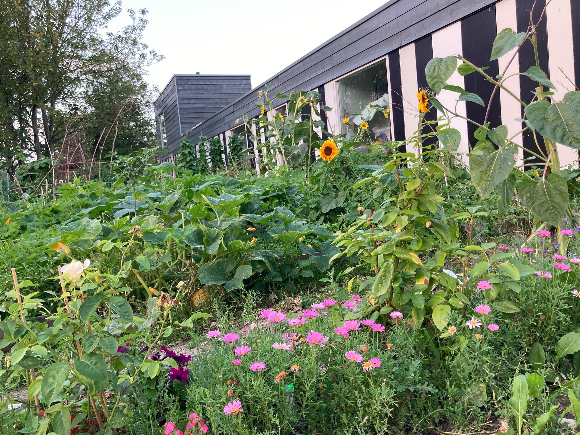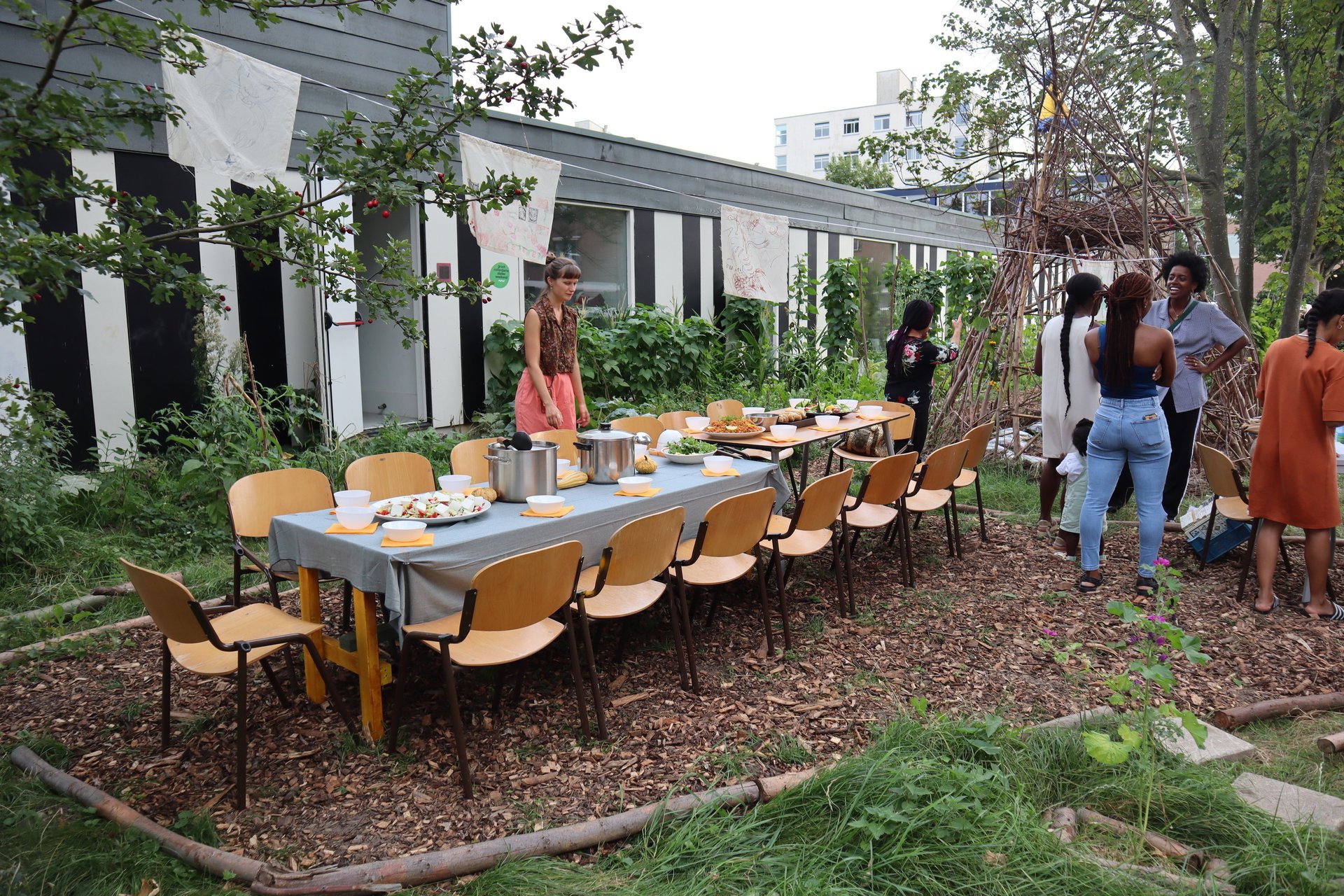 - a leisure garden with wild plants for insects and a space for outdoor art workshops, gatherings and meals.