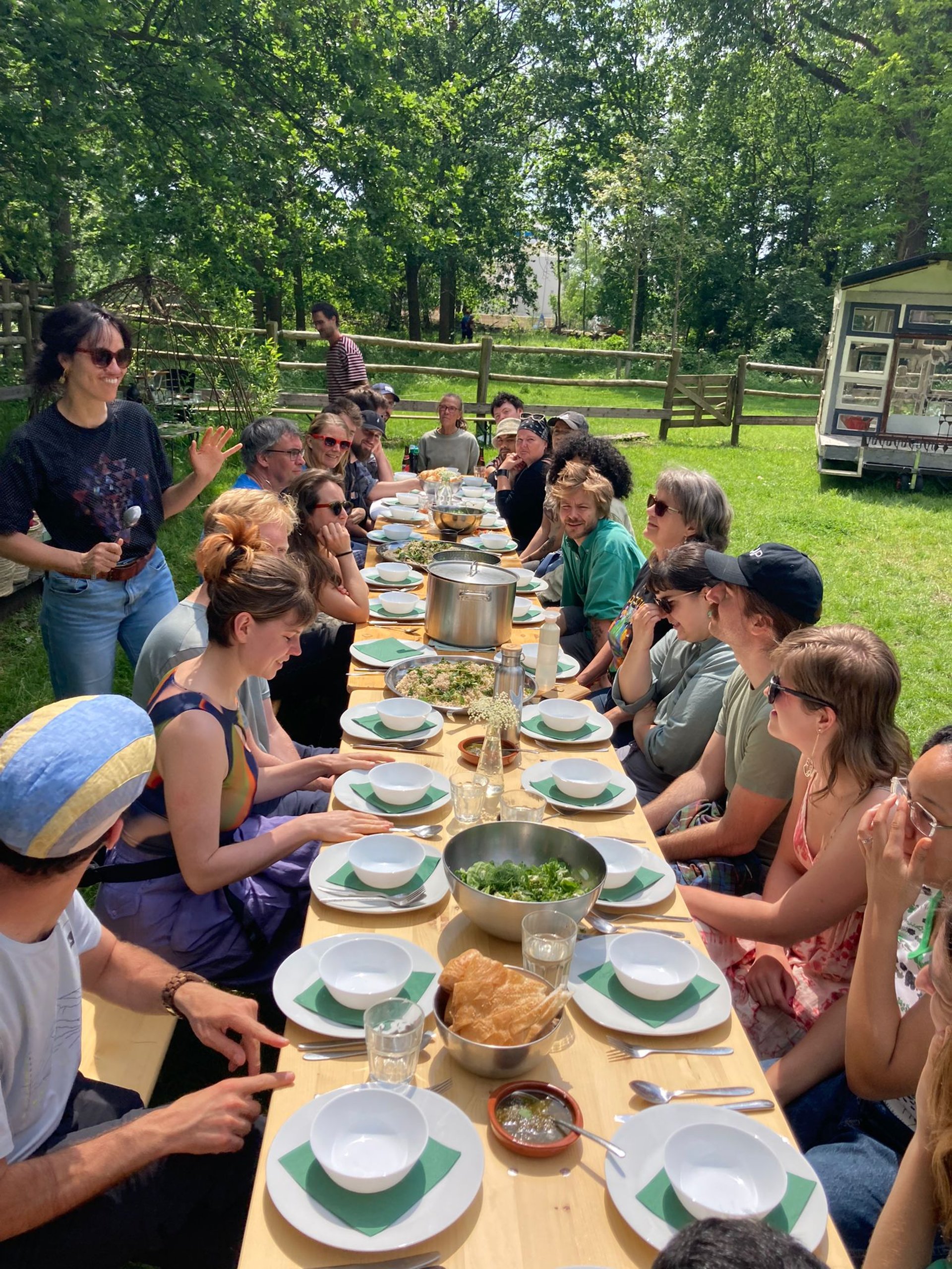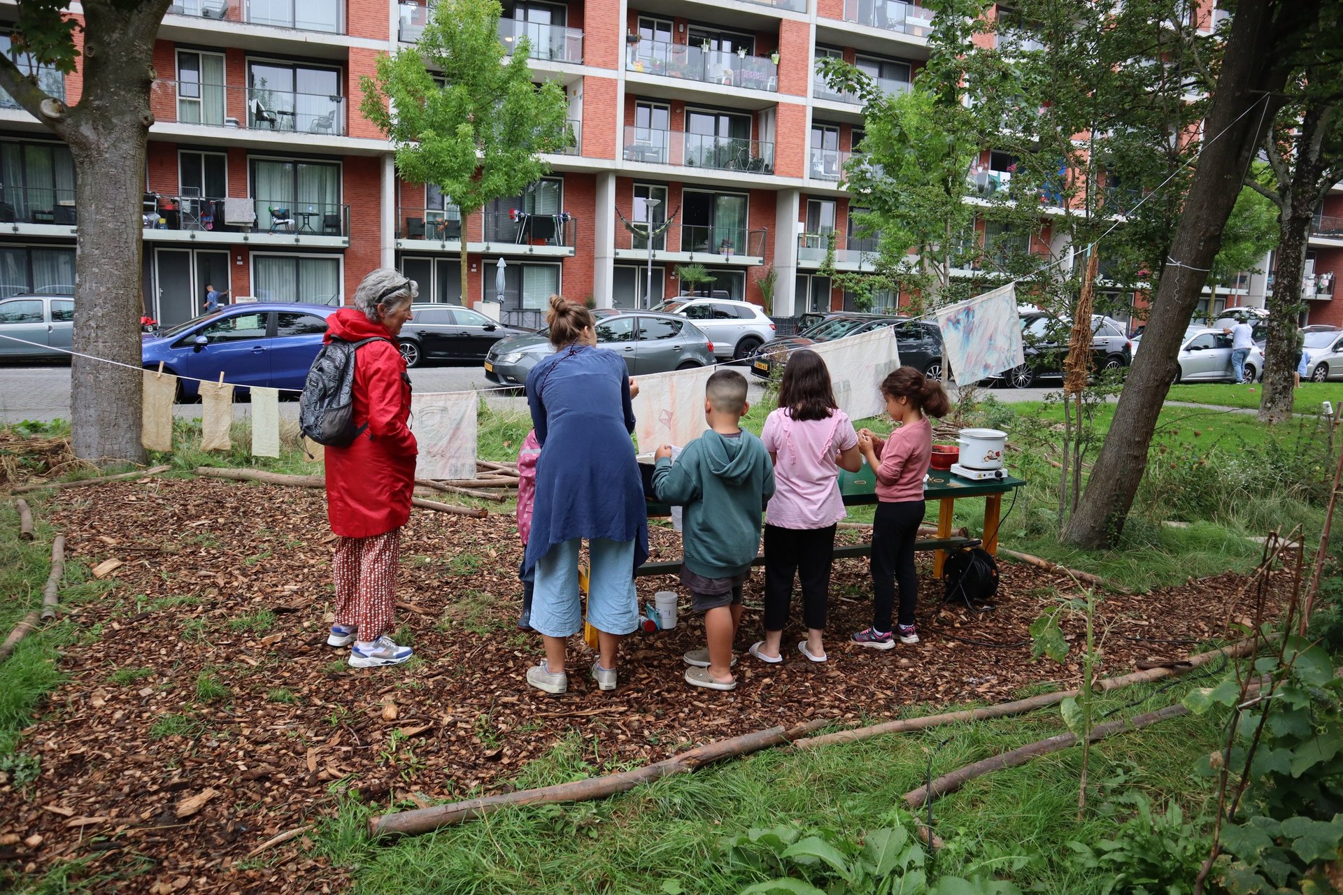 After a couple years of these activities and ongoing conversations with the Municipality of Rotterdam, we were given the permission to turn the green strip next to the studio building into a collaborative garden in which artists work together with local residents and neighbouring school children. The aim of the garden was to create a space for learning and being together as well as for bringing closer the relationship with humans, plants and food. This is done through a set of activities and interventions in and around the garden such as grass-weaving or cooking. These function at a neighbourhood level but with a vision far beyond.